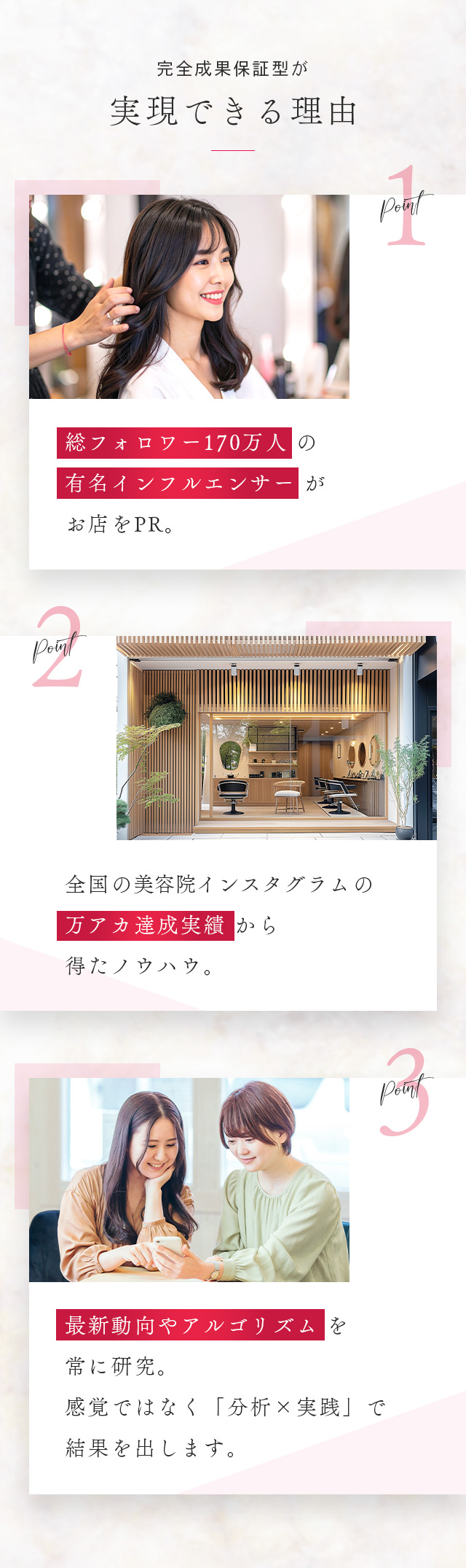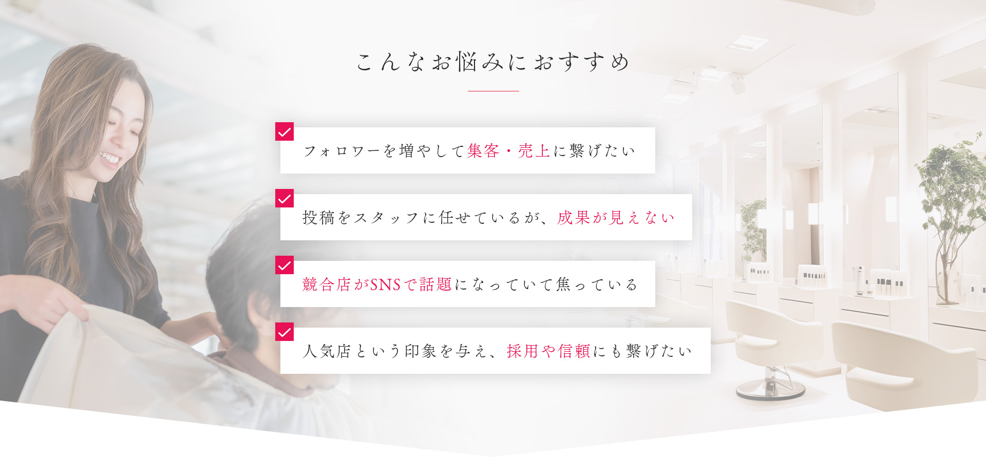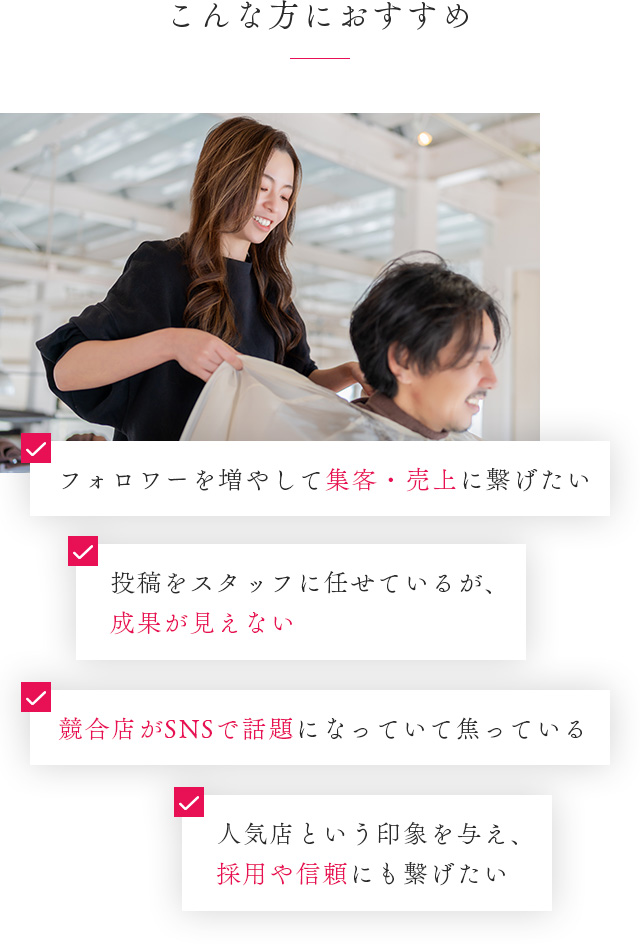 いいえ、必ずしも必要ではありません。スタッフ様ご出演の動画も親近感が湧き効果的ですが、施術風景やヘアスタイルのBefore/After動画、商品紹介など、顔出しなしでも伸びる企画をご提案可能です。